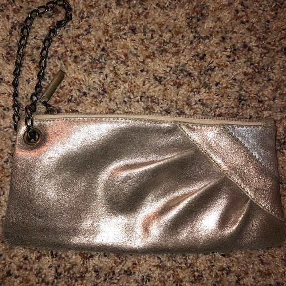 This is a very gently used, in great condition, metallic clutch. Mainly gold, but has a bit of silver on one corner. I love the chain wristlet! Goes with everything! In a smoke free/ pet free home