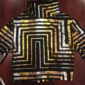 This is a turtle crop top with long sleeves. The colors are silver black and gold.