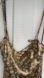 Metallic gold colored leopard-print dress with open back and spaghetti cross-cross tie. Beautiful.
