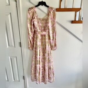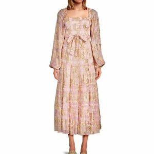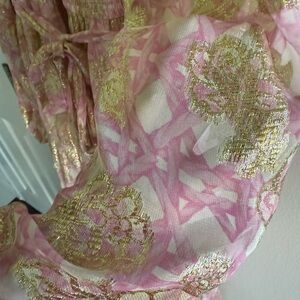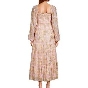 Metallic gold/pink A Love Long Sleeve Floral Maxi Dressis damaged at the bottom