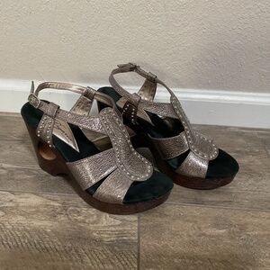 Degario wedge sandals. Great condition…barely worn. Dark silver iron color. 4” heel. 1” platform