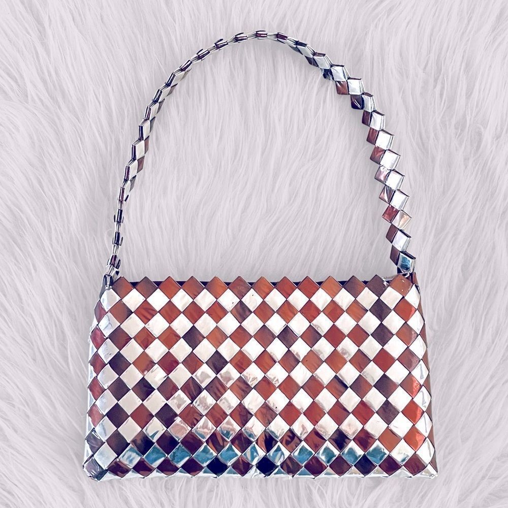 A super fun purse made entirely of candy wrappers! Top zipper closure. Minor wear as shown in pics.