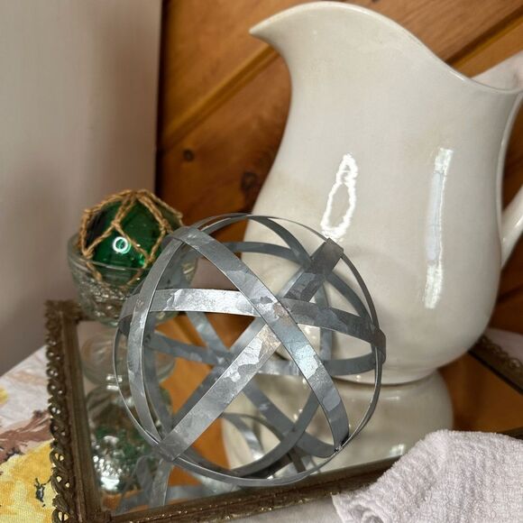 Stylish metallic sphere for home decor. Perfect for adding to a shelf or tray.