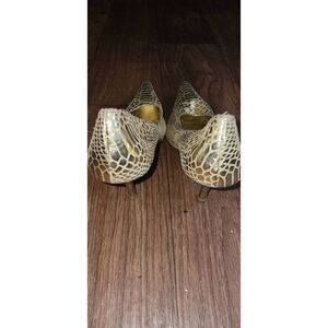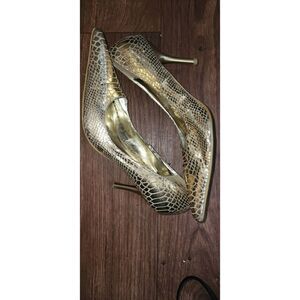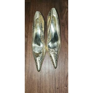 Gold metallic leather snakeskin pumps apx 4" heel.