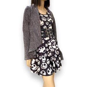 Fashionable layering chic in a metallic gray-black long sleeve, lightweight open front tiered ruffle hem cardigan by Dolls Kill. Lightweight great for casual to formal layering staple! Comfortable stretch in material and wear multiple ways!