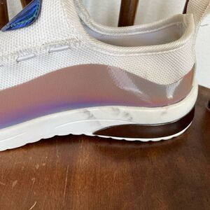 Fun pair of slip on shoes featuring a metallic shine. These are in like new condition but have a little scuffing on one side (see pic).