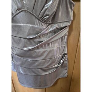Metallic Silver Sleeveless Pleated Womens Top XL Bisou Bisou Polyester/Spandex