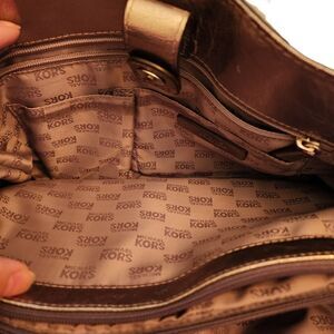 Metallic Silver Michael Kors Shoulder bag. GUC- Scratches on silver plate, inside clean, some black marks on outside of bag (see pictures)