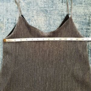 Silver tank with black inner lining. Subtle ribbing. Loose flowy fit.