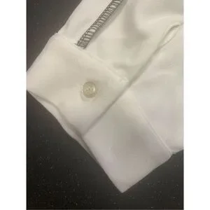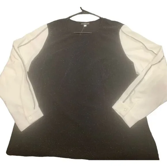 Ladies super cute black and white knit crew neck metallic shimmer sweatshirt with contrasting white sleeves. Excellent condition. Ladies size Large. Material is stretchy.