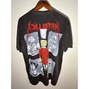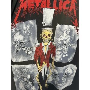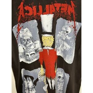 Metallica All Over Print Skeleton Vintage Reprint Brockum Tag Single Stitch. The size is stated in the tag as an XL. Please review the measurements provided below for an accurate fit assessment.