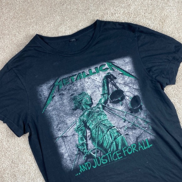 Keywords: Metallica, And Justice For All, T-shirt, Band Tee, Concert, Black T-shirt, Womens Large, Graphic Tee, Metal, Rock, 2017, Bay Island Sportswear, Lady Justice, Music, Album Art