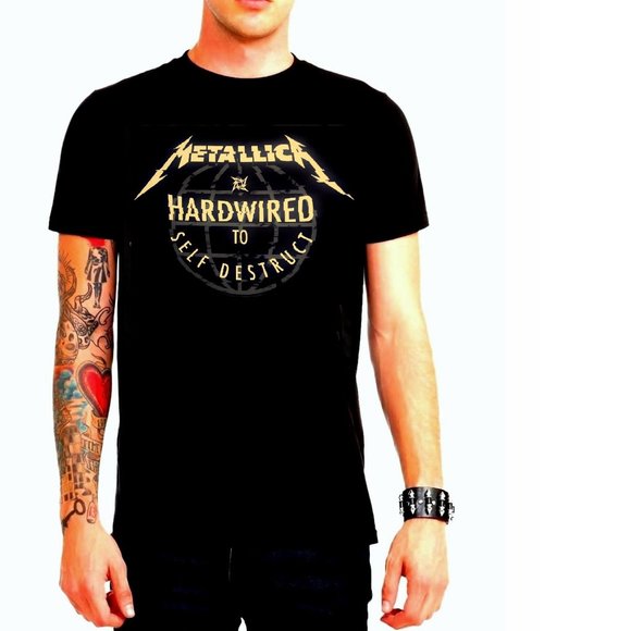 This awesome slim fit Metallica T-shirt features an updated version of the band's Metallica Hardwired To Self-Destruct Globe. A must have for any true Metallica fan! 100% slim fit cotton.