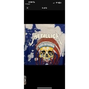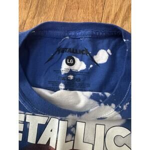 The Metallica In Vertigo You Will Be Blue Tye Dye Short Sleeve Tee Shirt in size L is a colorful graphic print shirt featuring the iconic rock band Metallica. Made from comfortable cotton knit fabric, this regular fit shirt is machine washable for easy care. With a crew neck and short sleeves, this T-shirt is perfect for any fan of classic rock music looking to add a unique and vibrant piece to their wardrobe.