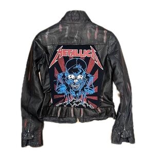 Metallica Leather Jacket Upcycle hand colored and decorated well loved