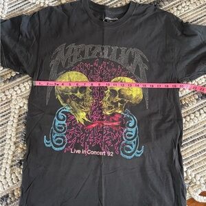Metallica tee with Metallica written in rhinestones. Such a cool tee. In excellent condition. Love this dressed up.