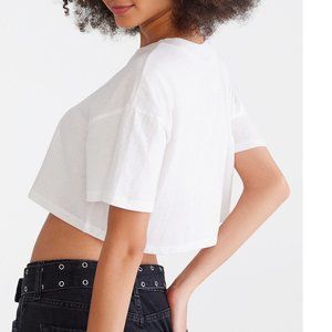 Metallica crop style T-shirt with Live In Concert 92 design on the front. Short, wide-cut T-shirt in cotton jersey. Light and soft fabric. Check our measurements, please. 100% Cotton.