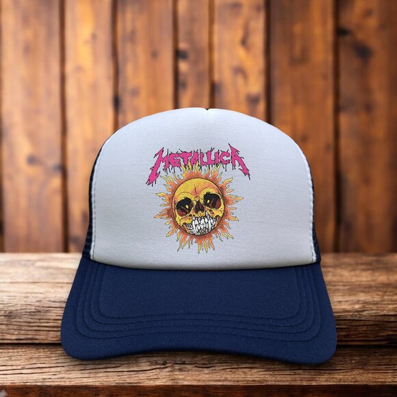 Metallica Unisex Trucker Hat Navy Snapback 90s Retro Heavy Metal Baseball Cap