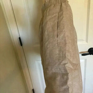 Super on trend tan and sliver metallic elastic high waisted skirt. The tag was cut but I would say it would fit a size medium. Please see the measurements in the pictures. Very well made and has pockets:)