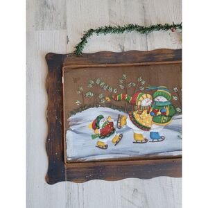 Metal snowman family ice skating picture frame Xmas wall decor