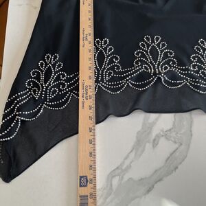 Elevate your wardrobe with this stunning black blouse from Metaphor. The elegant cowl neck and short sleeves are the perfect combination for a formal occasion or a night out. The blouse features a beautiful studded accent and a pullover closure for easy wear. Made with a blend of polyester and spandex, this blouse is stretchy and comfortable for all seasons. The blouse is perfect for plus size women and is available in size 3X. The blouse is ideal for travel, weddings, parties, and business meetings. Add a touch of bohemian and classy vibe to your wardrobe with this versatile top.