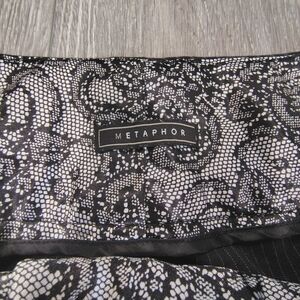 Chic black flare pants by Metaphor. Stylish and versatile for any occasion.size 2a. pinstripe. 0065