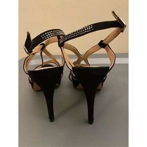 Metaphor Black Strappy Shoes 38671 Paris Studded Bling NWOB Heels Faux Suede