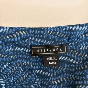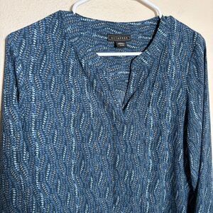 Metaphor Blouse Women's Medium Blue V-Neck Popover Lightweight Long Sleeve Sheer