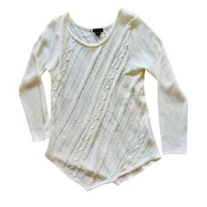 Metaphor Cream Asymmetrical Cable Knit Sweater XLARGE Vanilla Girl Cozy Soft