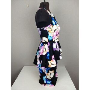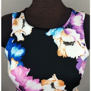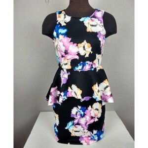 Stand up for style in this women's peplum dress from Metaphor. Crafted from sleek scuba knit, this floral-print racerback dress offers a comfortable stretch fit and a sheath cut that contours your body. The tailored fit enhances your curves, while the waist ruffle takes this feminine look to a higher level.