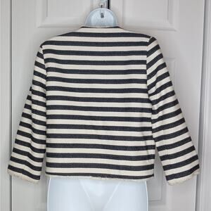 Black and white striped open front blazer from Metaphor in new condition with no flaws.