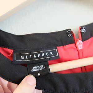 Metaphor Sleeveless Dress with Color Block pleating in front. Fully lined with back zipper. Gently used condition.
