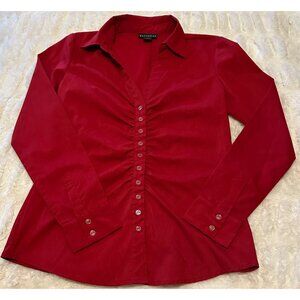 Metaphor Red V-neck Button-Down Blouse Polyester Cotton Blend Women's Size SMALL