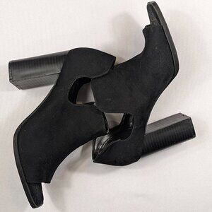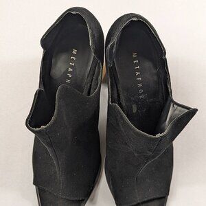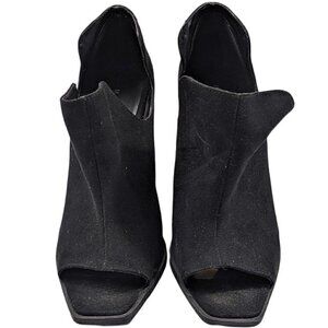Metaphor Regina Black Peep Square Toe Chunky Sandal Faux Suede Size 8 Y2K