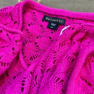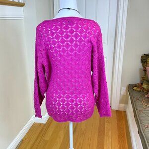 Metaphor Sweater Open Knit Boat Neck Long Batwing Sleeves Magenta Pink Purple (S)