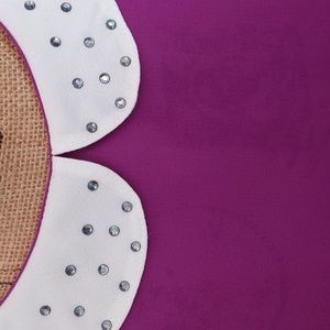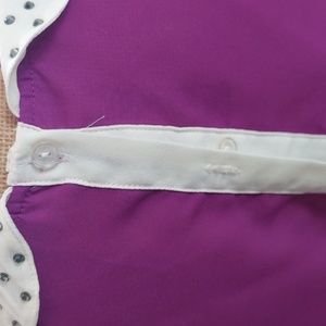 a pretty sleeveless top with a Peter pan collar& rhinestones..button up the back..a magenta color.. large/petite