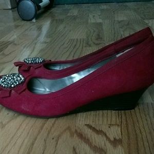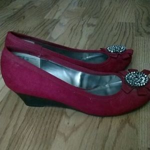 Maroon Wedges with Fake Gems and Ribbon At The Tip