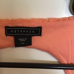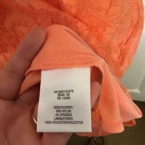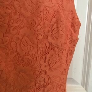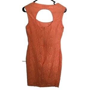 Metaphor Womens Sz S Lace Sheath Dress Mini Open Back Orange Lined Stretch Party