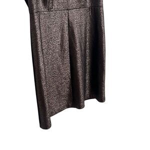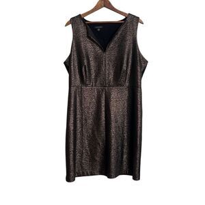Metaphor Metallic Sleeveless Split Neck Stretch A-Line Dress Bronze Black Sz XL