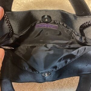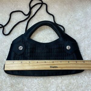 Metaphor Vintage Black Satin Woven Panel Evening Bag Rhinestones Accents