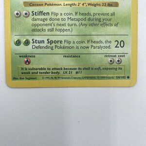 Metapod 54/102 1st Edition Pokemon Base Set Shadowless