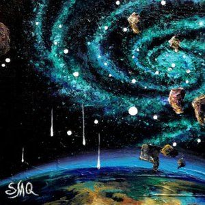 Meteor storm & emerald galaxy. Space Art Acrylic Painting by Sofia Goldberg