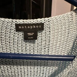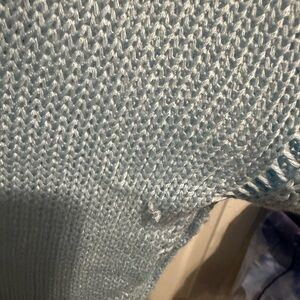 shirt has no tags, but has only been worn maybe once or twice. there are a couple of pulls from being in storage. it’s sky blue and super lightweight, so it’s very comfortable!