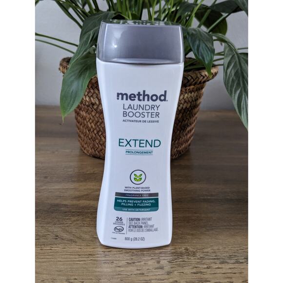 Smooth out your shirts, sweaters, and denim with method Laundry Booster – Extend. Each capful of powder is specifically designed to give a load of laundry that extra lift — keeping your favorite clothes from pilling, fuzzing, and fading. Plus, it enhances the performance of your detergent and helps to keep clothing in top condition with stain-lifting power. This method Laundry Booster – Extend gives you 26 loads of power.
