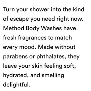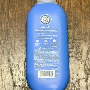Limited edition body wash by Method. Features a vibrant blue bottle. Vanilla, chantilly cream, and amber scent.