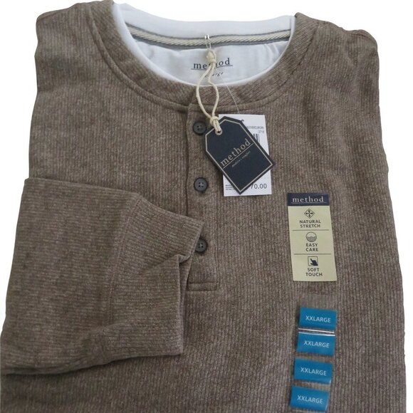 NEW Method Men's Ribbed Henley Shirt MSRP $70 Size: XXL Natural Stretch Easy Care Soft Touch 1/4 Buttoned, Layered, Crew Neck