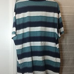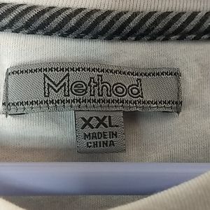 NWT Method t-shirt. Colors are navy blue and green and white striped. Measurement of length is 32 and chest measurement is 26 inches.