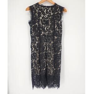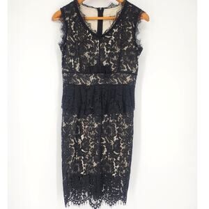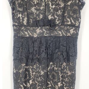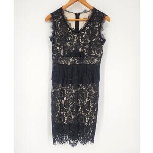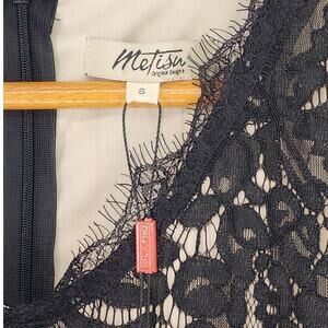 Metisu Black Lace Overlay Sheath Dress with Ruffle & Bow Women’s Size Small