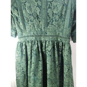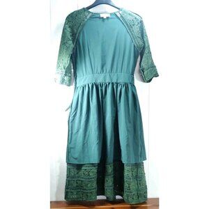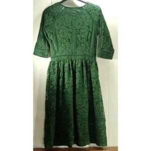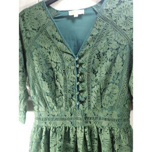 Metisu Dress Forest Green Ivy Lace Pattern Lined Overlay V-neck Size S
