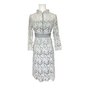 Metisu Lace Long Sleeve Midi Dress Sz M Victorian Regency Sheer Coquette Dainty